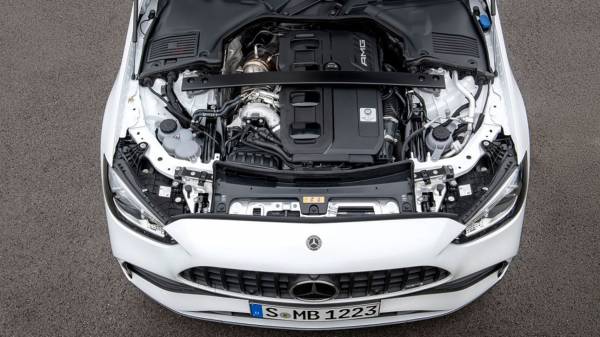 Под капотом новинки расположился 2-литровый турбомотор M139 мощностью 402 л.с. и 500 Нм крутящего момента. Отмечается, что это один из самых мощных 4-цилиндровый двигателей на рынке. Конечно же, не считая модели Mercedes-AMG CLA45s, который выдаёт 416 сил. Таких показателей удалось достичь за счёт установки гибридной турбины, которая приводится в движение выхлопными газами. А также имеет собственный электромотор, который раскручивает её на малых оборотах двигателя. Кроме того, автомобиль имеет 48-вольтовый стартер-генератор на 13 л.с.